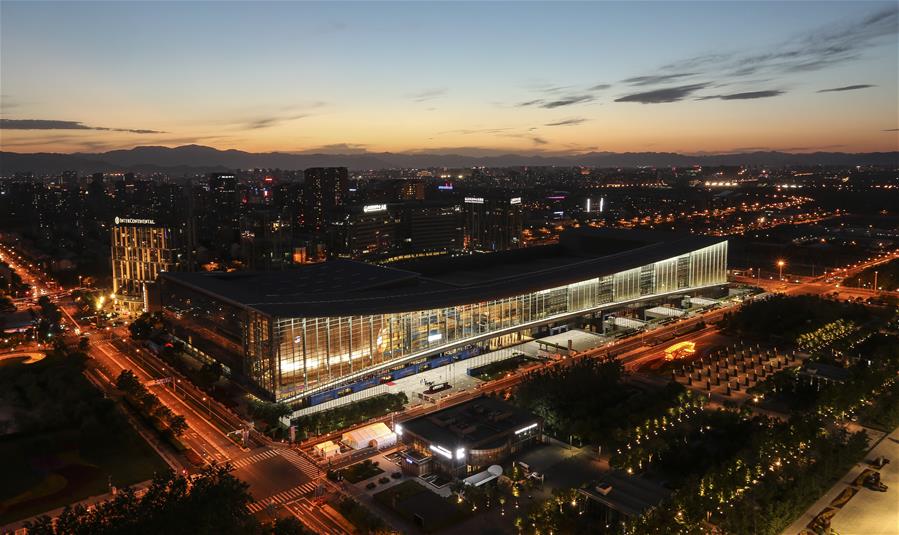 5月14日在玲珑塔上拍摄的北京国家会议中心及周边夜景。