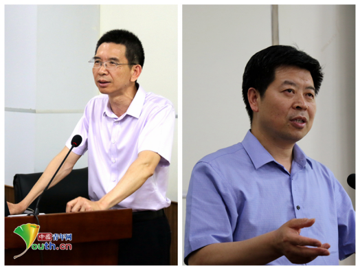 中国青少年研究中心副主任张良驯(左)、南京师范大学道德教育研究所所长冯建军(右)进行发言。中国青年网通讯员齐立旺 摄