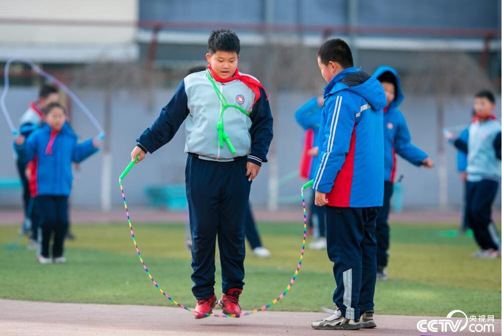 央视网消息:入冬以来,内蒙古呼和浩特市玉泉区通顺街小学组织学生利用体育课和大课间开展打沙包、老鹰捉小鸡、跳绳等传统趣味游戏活动,让孩子们在享受运动的同时愉悦身心,增强体质。图为:12月23日,内蒙古呼和浩特市玉泉区通顺街小学学生在大课间玩花样跳绳游戏。(丁根厚 摄影报道)