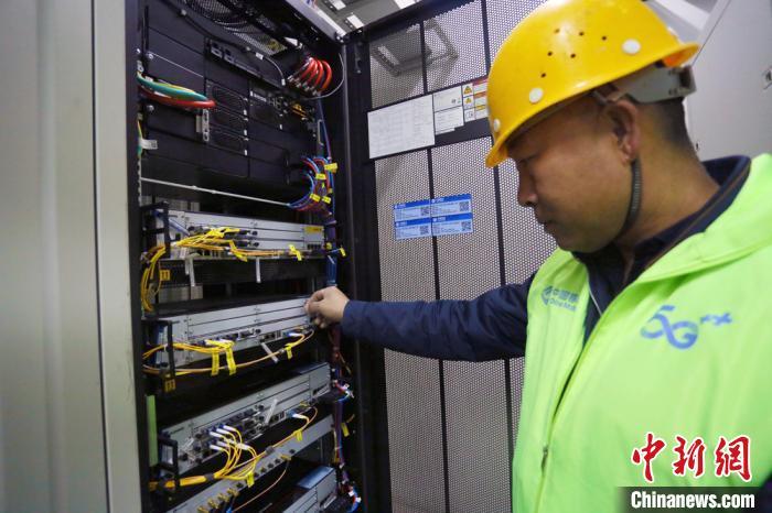 12月下旬,王立富在传输机房检查线路。 高展 摄