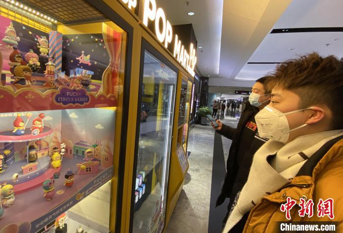 图为西安民众驻足于盲盒无人售卖机前。 张一辰 摄