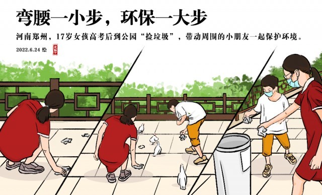 近日,河南郑州绿城广场鸽子喂养区附近,一名身穿红裙的女孩儿引起了周围游客的注意,她多次弯腰将地上的垃圾捡起扔进垃圾桶,她的行为也带动了周围的小朋友一起参与到“捡垃圾”活动中。据悉,这位女孩今年17岁,刚刚参加完高考。因为之前在广场游玩时发现地上会有废弃的包装袋,所以趁着刚高考完时间比较多,到广场上捡一点垃圾,希望可以为小朋友做个榜样。少年强则国强!