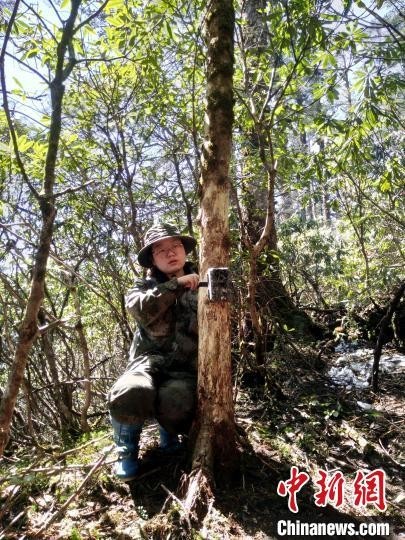 中新社北京10月24日电 题:“90后”大熊猫“捡屎官”付明霞:在深山密林寻找野生大熊猫踪迹