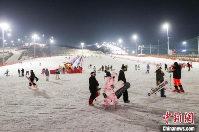 12月12日晚,滑雪爱好者在河北省张家口市崇礼区富龙滑雪场感受夜场滑雪。 中新社记者 贾天勇 摄