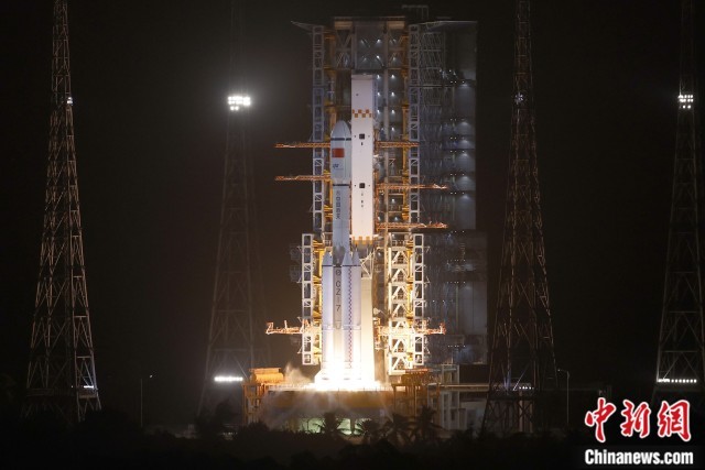 长征七号运载火箭(简称“长七火箭”)在文昌航天发射场成功发射。中新社记者 富田 摄