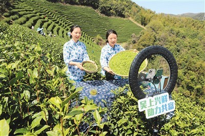 在浙江省湖州市吴兴区道场乡栖茗岭茶场,吴兴区供销合作社组织直播团队开展“生态茶香,线上品茶”春茶直播活动,向网友介绍茶叶采制过程,助力茶农销售春茶。