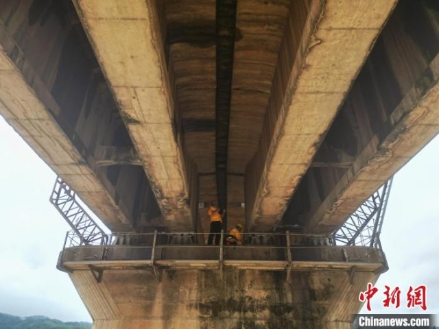 作业人员进行桥墩检查。唐达 摄