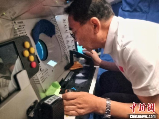 白春礼院士在载人潜水器舱内工作。中国科学院深海所/供图