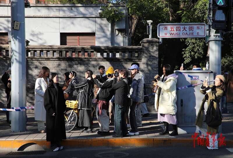 10月20日,北京五四大街,年轻人正在拍照。中青报·中青网记者 陈剑/摄
