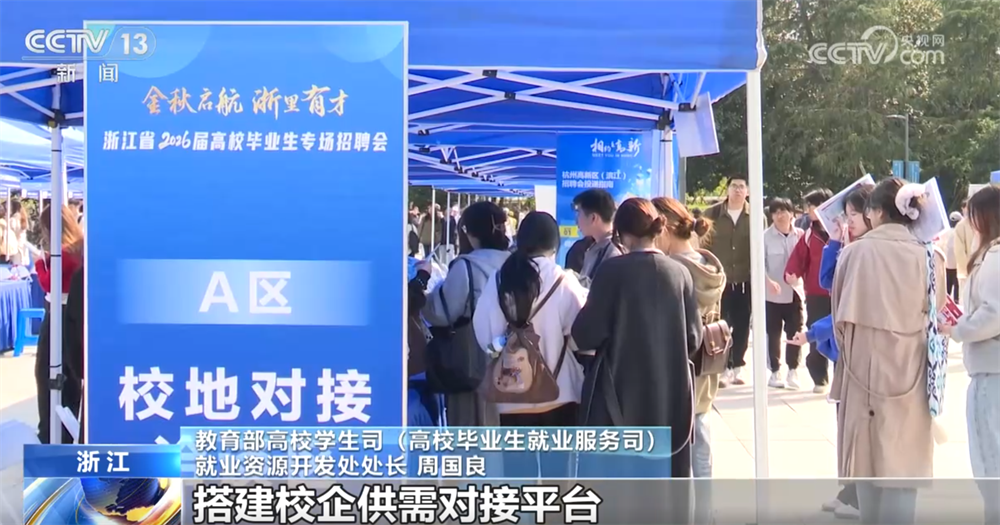 央视网消息:10月28日,教育部2026届全国高校毕业生“金秋启航”校企供需对接活动在浙江杭州举行。