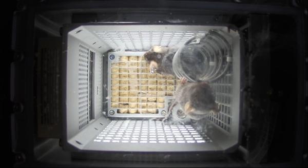 太空小鼠”在饲养盒中。