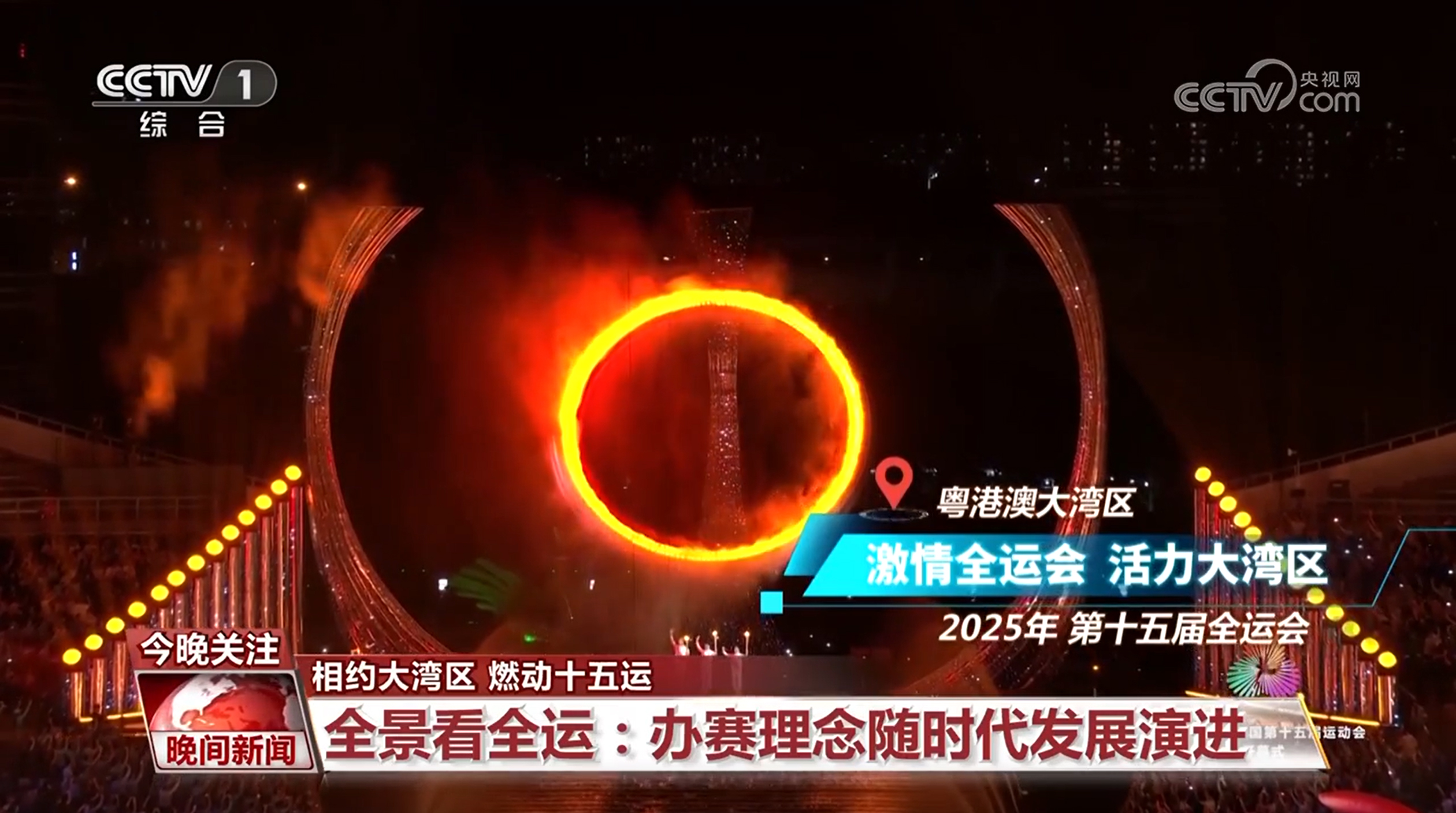 2013年在辽宁举办的第十二届全运会口号是“全民健身 共享全运”;而今年在粤港澳大湾区举办的第十五届全运会的主题口号则是“激情全运会 活力大湾区”,粤港澳“三地联动”,是在“一国两制”之下,大湾区经济、社会、文化一体化发展的生动写照。