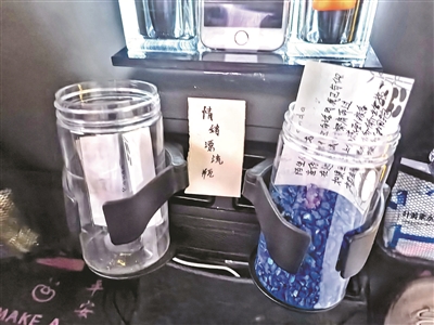 杨永壮还在后排放置了“情绪漂流瓶”,上一位乘客可以给下一位乘客写下寄语。