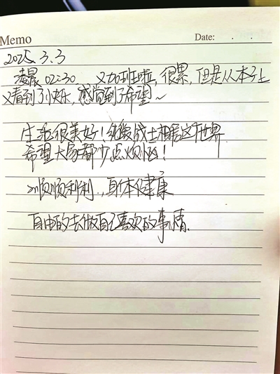 他还曾在医院门口接过一个女孩,每个月需要做透析,并患有重度抑郁。在车上,她谈起自己曾经自杀过。杨永壮劝她不要再做傻事,这一刻他突然理解了为什么那么多人的愿望都差不多,会在本子里写下一句句“平安健康”。
