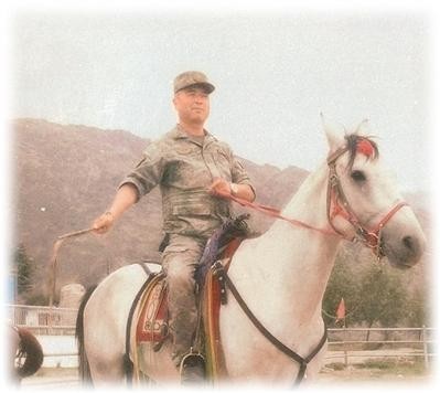 20多年前,我从部队退伍后,加入到老虎台乡民兵骑兵连中来。小的时候,我也在心里埋怨过您:为什么我的爸爸不管家里和自己。只有真正成为骑兵连的一员,我才真正体会到你们的不容易。冬天下雪的时候,沟沟坎坎里都堆满了雪,骑马经过时,一不小心就会连人带马摔到沟里;在户外巡逻时,经常好几十里地都没有一个饭馆,我们在戈壁滩上就着水袋里的水啃馕;每逢节假日,别人都在家里陪老婆娃娃,我们却要忙着外出巡逻保卫平安。这些年来,老婆开始时也埋怨过我不顾家,但渐渐地,她理解了我的工作,也很支持我。现在逢年过节时,她还会主动说:“你安心忙工作去吧!”
