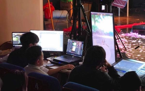 陕西省歌舞剧院团播中,导播正在切换音乐。受访者供图