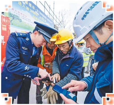 南京铁路公安处南京南站派出所民警为农民工讲解反诈等安全知识。