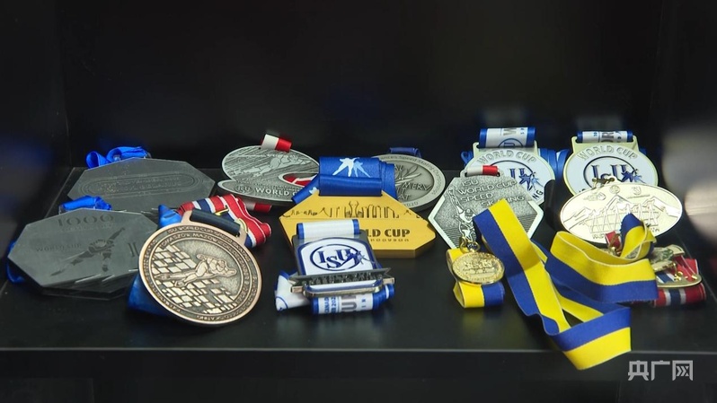 宁忠岩获得过的部分奖牌(央广网发 牡丹江市融媒体中心供图)