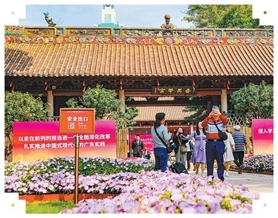 农讲所纪念馆前身是有着600多年历史的番禺学宫,古风浓郁、氛围喜庆,庭院内还有一棵200多岁的古木棉树。“我要好好学习,传承文化,不负美好时代。”谢铭恒眼神坚定。