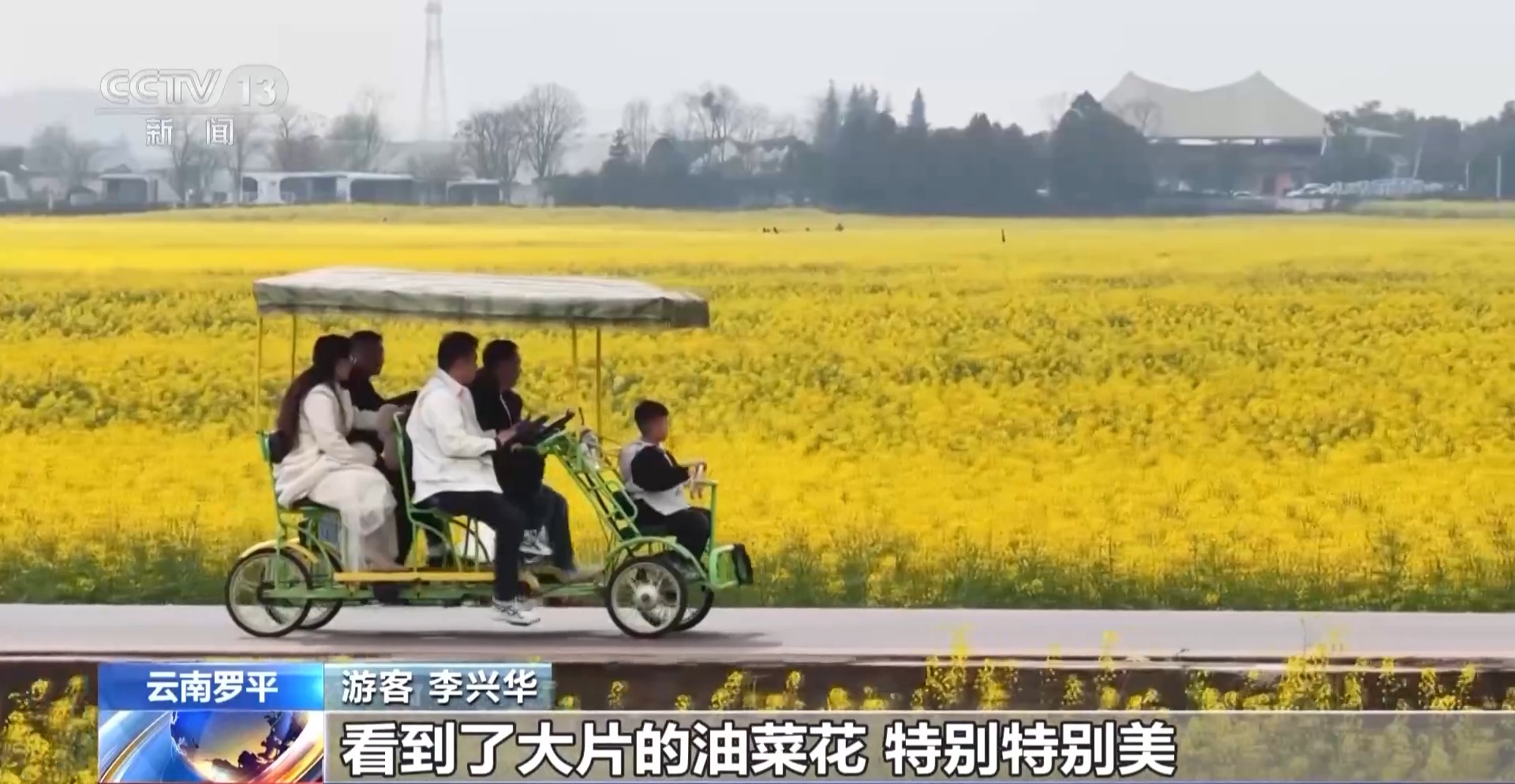 游客 李兴华:这里非常美,看到了大片的油菜花,特别美。