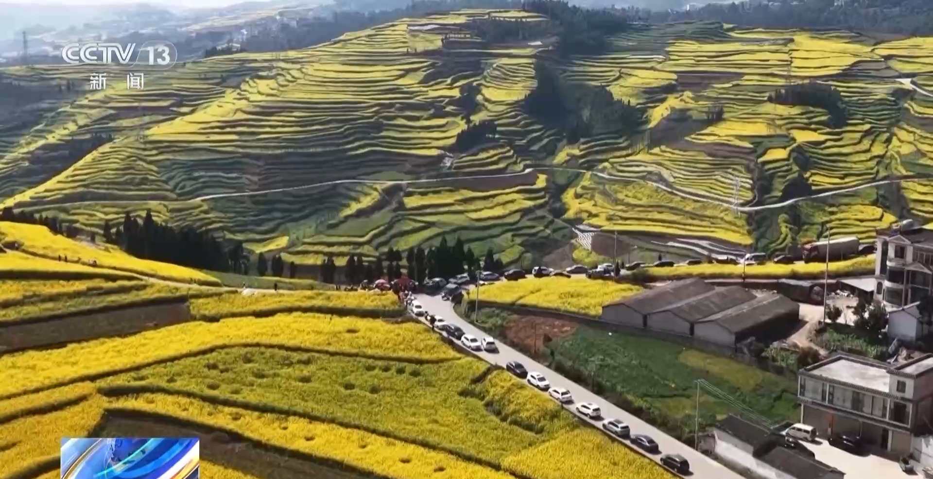 游客 崇庆余:这里的油菜花是在山上,一层层梯田推进,一片片的花海向山上延伸,非常壮观,非常好。