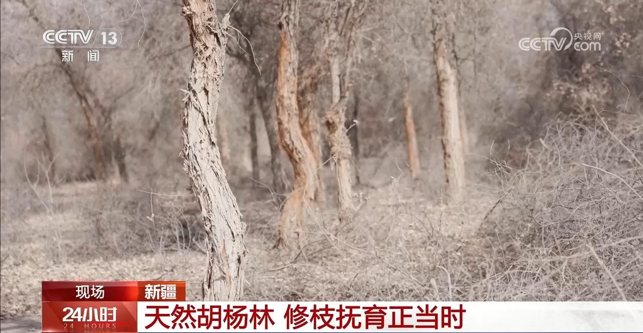 眼下,正值天然胡杨林清除病虫害的关键时节。在新疆图木舒克市,护林员们正在对天然胡杨林开展修枝抚育、病虫害防治等工作,促进胡杨树健康生长。