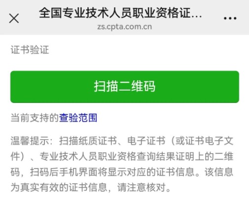 扫描证书上的二维码进行查询