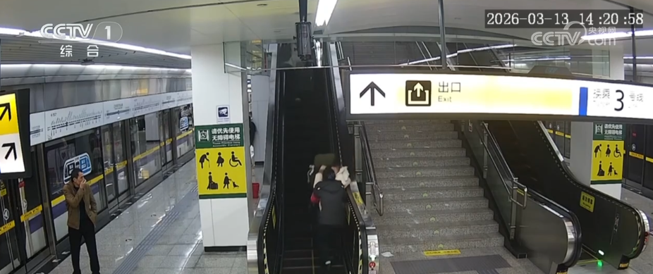 抱娃母亲扶梯摔倒 地铁工作人员预判救险