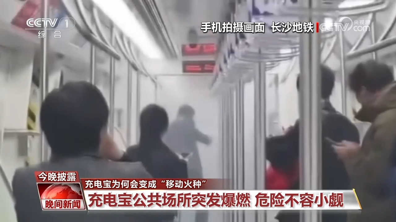 然而,这样的充电宝险情并非个例。在密闭的地铁车厢内,充电宝自燃同样危险。近日,长沙地铁一列车厢内,一名乘客背包内的充电宝突然自燃,大量白烟瞬间弥漫车厢,乘客踩踏灭火无果,最终工作人员紧急使用灭火器材处置才控制住了险情。