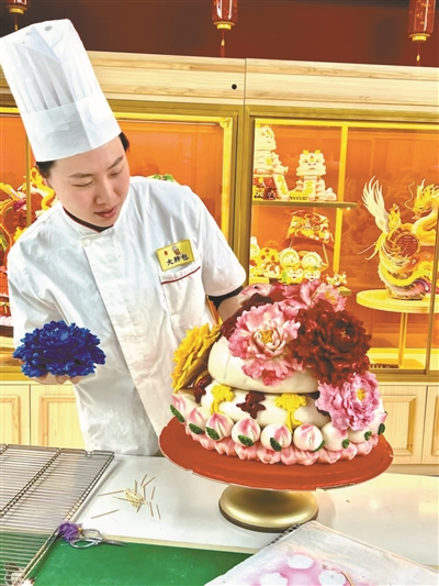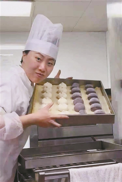 尽管没有选择传统学业这条路,黄怡菲也从来没有“躺平”,而是换一种方式,以同样的专注、深耕与坚持的标准要求自己。去年,单位所在的集团举办面点大赛,几十个食堂的点心师同台竞技。身边同事阿姨劝她:“随便弄弄就行,不用太拼。”她偏不,就是要拿第一名。下班后还独自留在食堂默默苦练。她选择了高难度的造型面点“枣生贵子”,红枣是馒头做的,核桃是面团捏的。她告诉北青报记者:“为了力求逼真可爱,有时候要失败好多次才能做成功。”