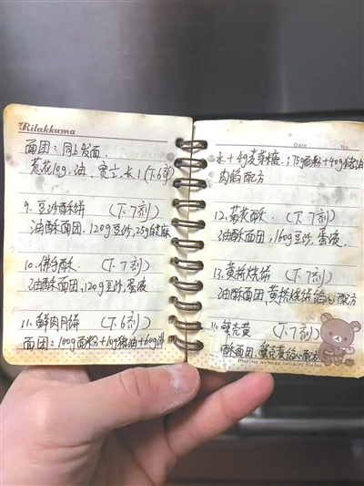 她会提前制定一周菜单,基本可以做到好多天不重样。新花样的背后离不开“仅此一本”的手写绝版《点心宝典》,这是黄怡菲的独家秘籍。“这本子都是我自己手写的,从我刚刚上烹饪专业开始,16岁左右到现在快十年时间了。每一次学的点心我都会自己记下来,目前为止,本子上已经记录了100多种美食的配比和制作步骤。”翻开本子,里面的笔记密密麻麻。上班后,这个习惯延续了下来。常做的美食她已经把做法烂熟于心,遇到不常做的点心就会翻一翻自己的这本美食宝典。