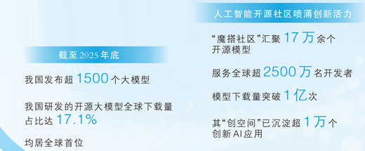 今年的《政府工作报告》提出,支持人工智能开源社区建设,促进开源生态繁荣。“魔搭社区”作为我国目前最大的人工智能大模型开源社区之一,不仅汇聚众多开源模型,服务全球超2500万名开发者,还为开发者们提供交流碰撞、合作创业的超大线下空间,塑造充满活力的创新生态。