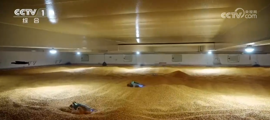 平仓机器人研发团队负责人郭凤民介绍,像这样1400多平米的粮仓,传统人工平仓需要三人三天作业。同样三台平仓机器人协同平仓,不到一天就可以完成相关作业。
