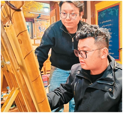 旦增老师的唐卡体验馆在八廓街已开了很多年。此前,他主要做一些面对游客的生意,后来团市委的工作人员找到他,希望他为青年开办夜校,随后就有了这样一个平台。