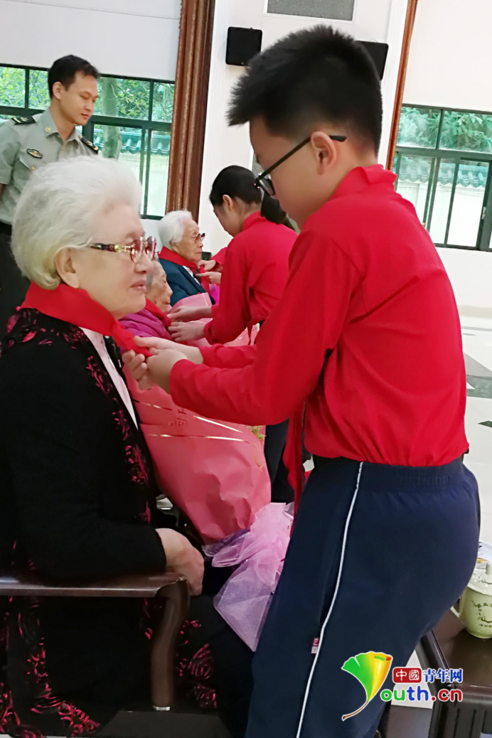 孩子们为革命前辈献上红领巾。通讯员 姜润邈 摄