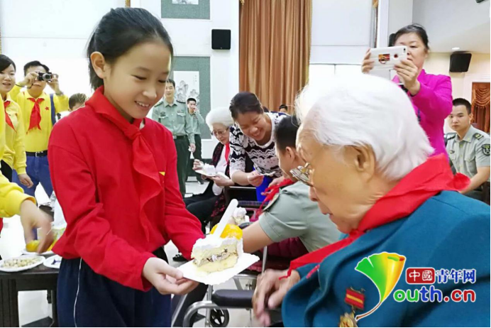 孩子们为革命前辈赠送蛋糕。通讯员 姜润邈 摄